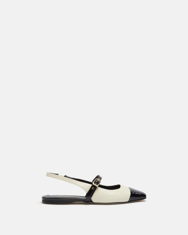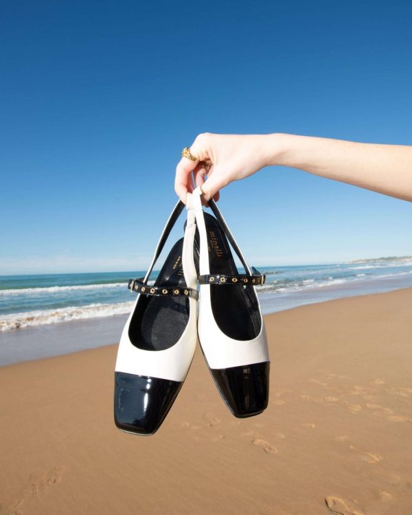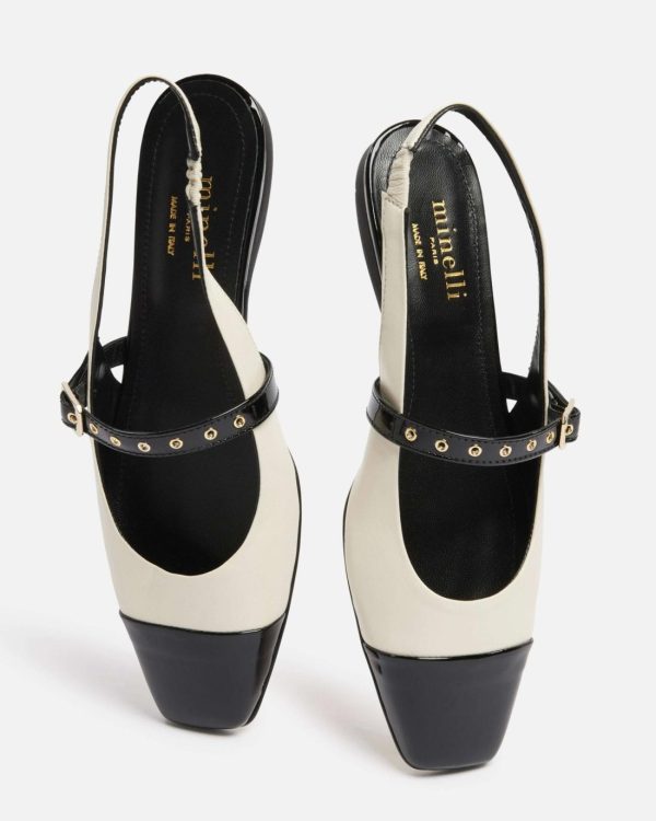 Adoptez le chic intemporel avec les slingbacks Narnia en nappa vernis écru et noir, fabriquées en Italie. Leur talon de 1 cm assure confort et élégance. Parfaites pour un look raffiné, à porter avec une robe ou un pantalon pour une touche de sophistication !