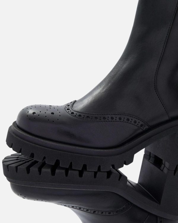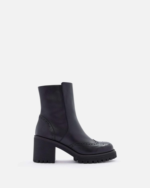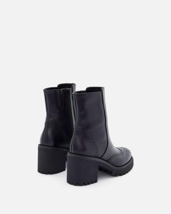 Découvrez les bottines LINNY en velours noir, avec leur semelle épaisse et talon de 7 cm. Associez-les à une jupe midi pour un look moderne et élégant.