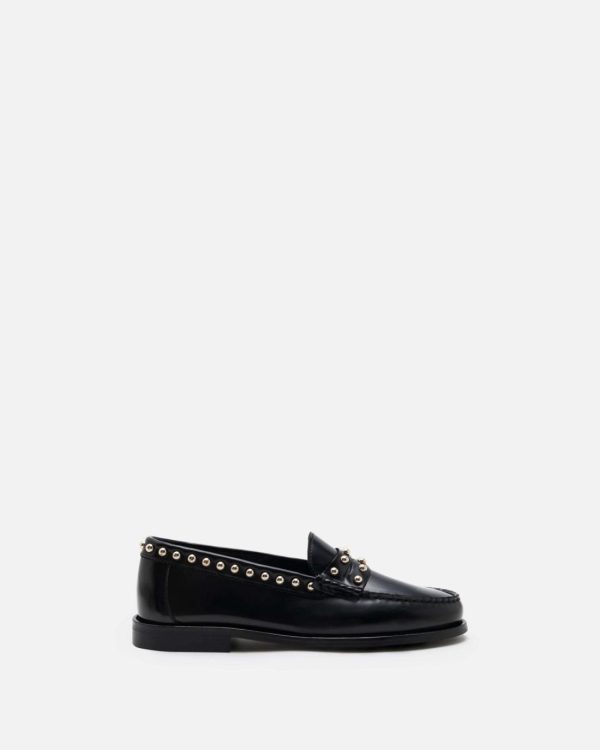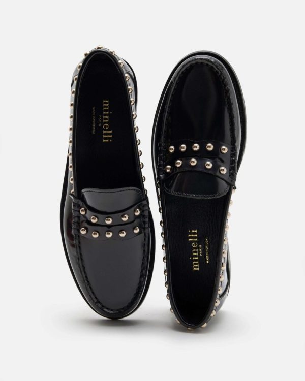 Les mocassins Jimmy/POL en noir, fabriqués au Portugal, combinent cuir lisse et clous métalliques pour une allure chic et audacieuse. Ils offrent à la fois confort et style, parfaits pour élever vos tenues du quotidien. Associez-les avec un pantalon ajusté ou une jupe pour un look sophistiqué et