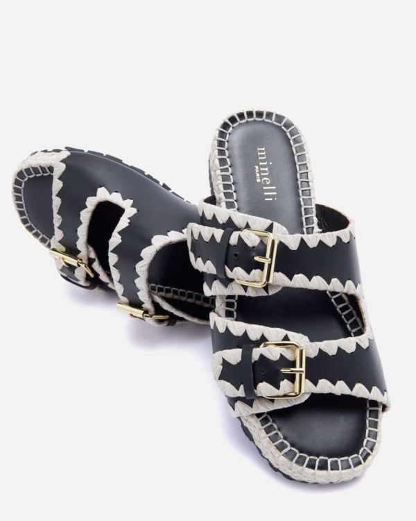 Mules Femme | Mules ISALYS Noires à Détail Tissé | Minelli