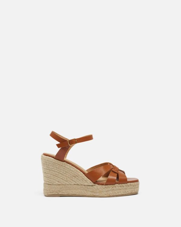Les compensées Tania en cuir cognac, fabriquées au Portugal, offrent une allure élégante et élancée grâce à leur talon de 9 cm. Dotées d’une semelle en néolite et d’une doublure en cuir, elles garantissent confort et raffinement au quotidien.