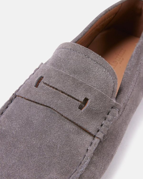 Les mocassins Vittore en velours souris présentent une teinte grise élégante. Leur semelle en gomme assure confort et durabilité. Conçus en cuir de veau et doublés en mouton, ces mocassins à talon de 0,5 cm sont idéals pour un look chic et casual.